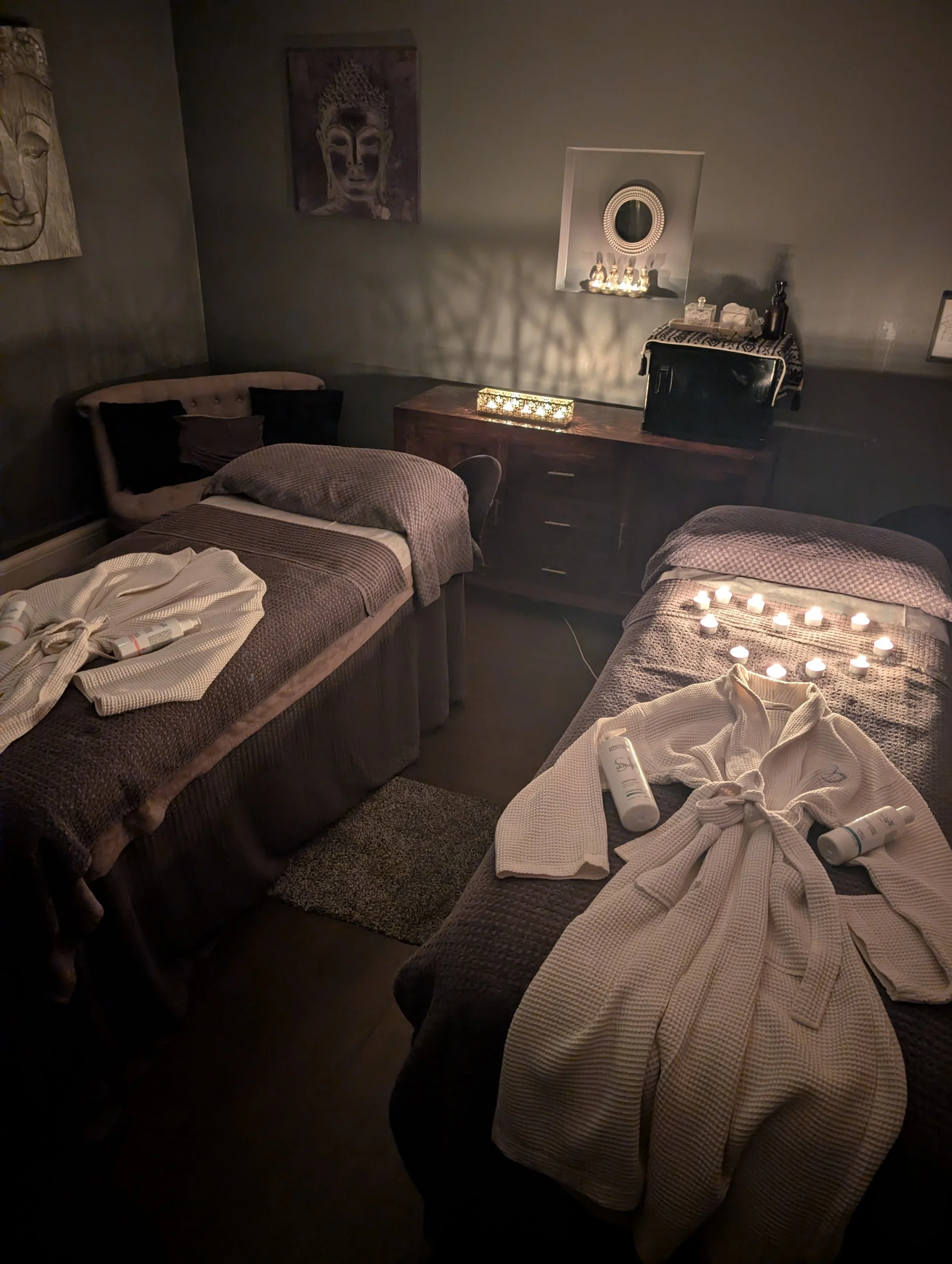 🤎 Enjoy a full body massage side by side in our candle lit treatment room with our special chocolate infused oil